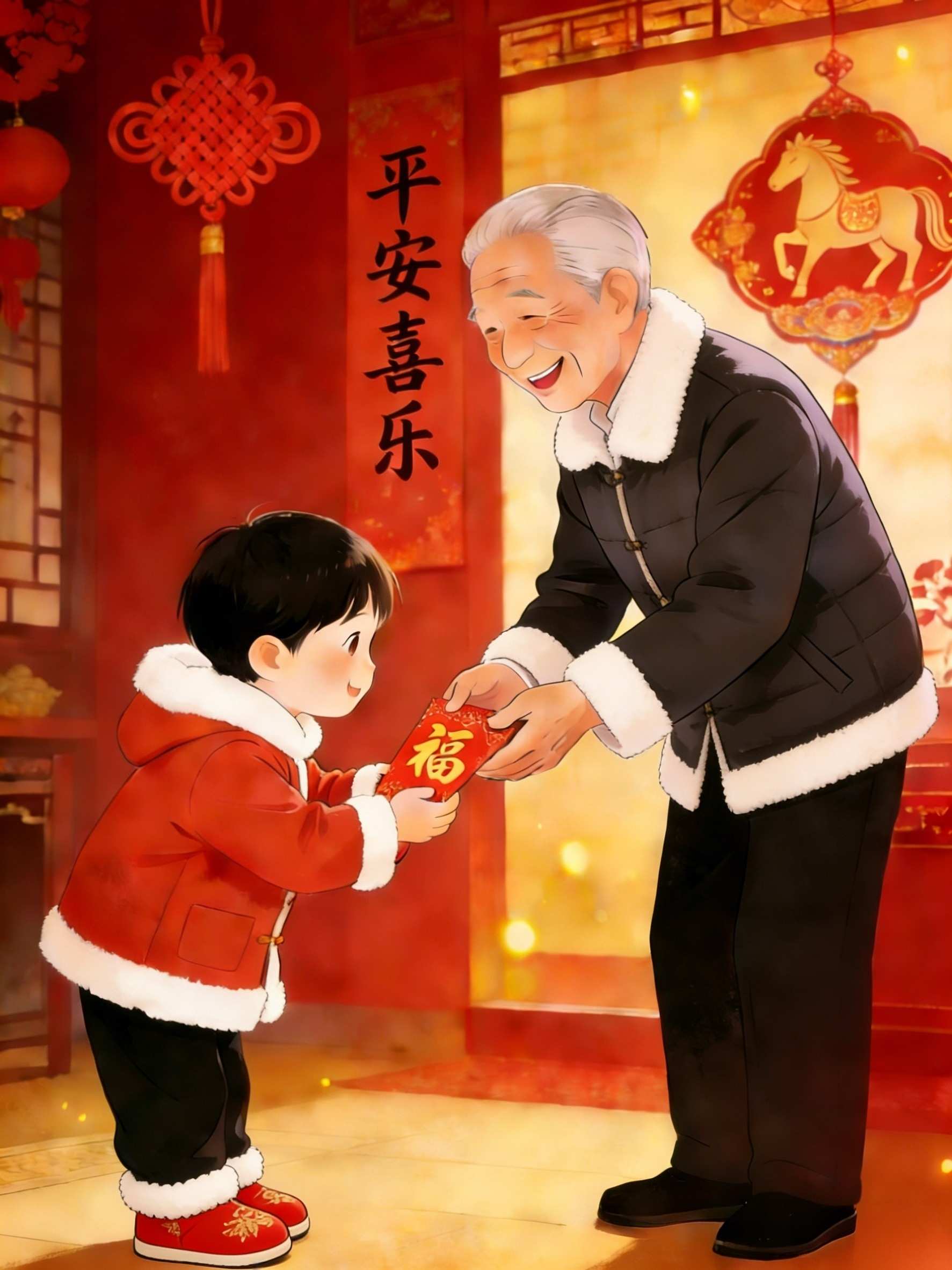 新年の期間中、人々は家族や友人を訪ね、優しい言葉をかけ祝福します。彼らはお互いに「明けましておめでとうございます」と言い、皆の健康と幸せを祈ります。年長者は子供たちや年少者にお金の入った赤い封筒を渡し、彼らの成長と幸福への愛のこもった希望を表します。