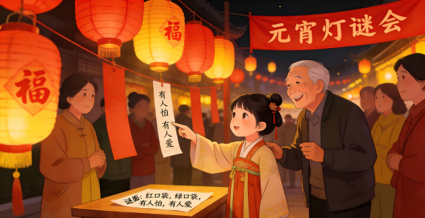ランタンの謎当ては宋の時代に始まり、ランタン フェスティバルの最も重要で人気のあるアクティビティの 1 つです。ランタンの所有者は、紙のメモに謎を書き、色とりどりのランタンに貼り付けます。人々はなぞなぞを当てるために群がります。