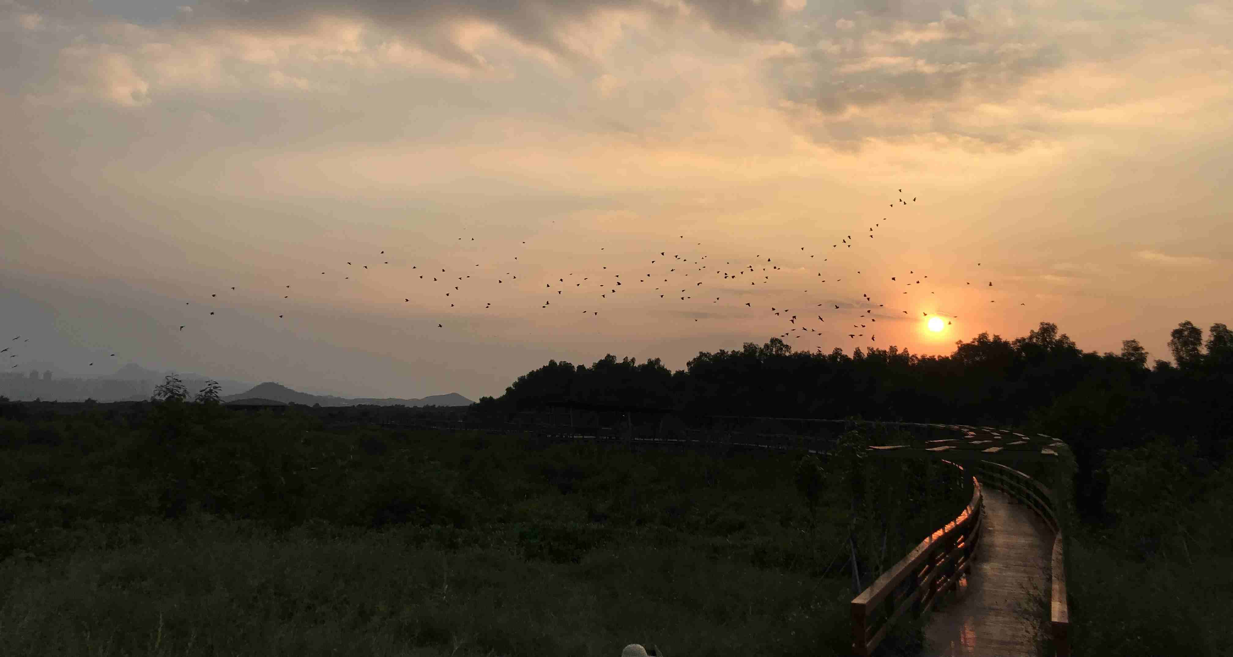 深セン湾の北部に位置し、唯一の国家自然保護区であり、水鳥の群れと密生したマングローブ林が生命力あふれる風景を描いています。