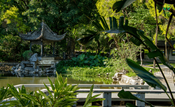 世界中から約100点の精緻な庭園芸術作品が一堂に集められ、庭園美術館のような美しい景観をどこまでも眺め、自然の景観と人工の建築物が巧みに融合し、東洋庭園の奥深さや各国の様式を紹介しています。